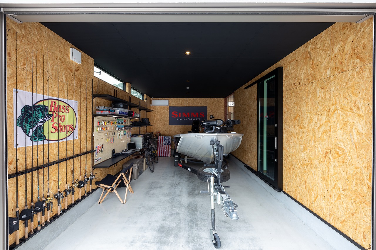 ボートガレージのある家